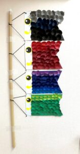 今年のグループホームのこいのぼりはちょっとシックな色合いのものが出来ました。色画用紙の濃淡をいかしたことで、大人の雰囲気のこいのぼりになり、グループホームのデイルームにうまく溶け込んでいます。