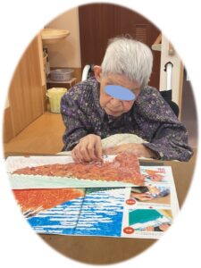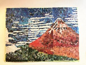 皆がいいものを作りたいとの強い思いで色集めから臨んだおかげで、無事に完成した富士山のちぎり絵です。これを見るたび、皆で充実感を味わっています。